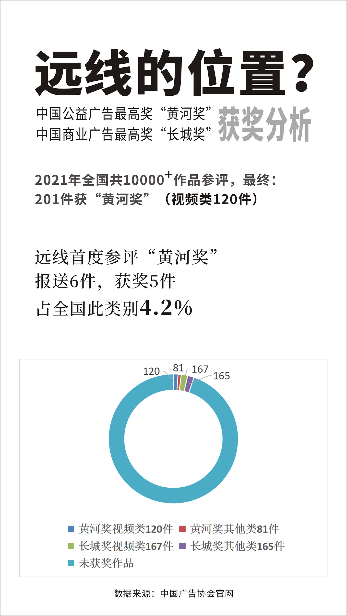 中國廣告協(xié)會(huì)(中國廣告黃河獎(jiǎng)長城獎(jiǎng)組委會(huì))日前公布了2021年中國公益廣告黃河獎(jiǎng)入圍優(yōu)秀及以上作品名單,遠(yuǎn)線5件視頻類公益廣告上榜,位列西部第一、總獲獎(jiǎng)數(shù)全國第五、視頻類獲獎(jiǎng)數(shù)全國第四。這是遠(yuǎn)線首度參評黃河獎(jiǎng),共選送6件視頻參評,僅1件作品未入圍。“黃河獎(jiǎng)”金銀銅獎(jiǎng)將在第28屆中國國際廣告節(jié)上揭曉。