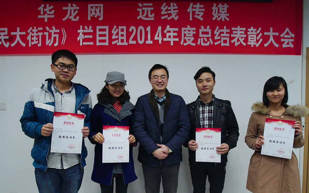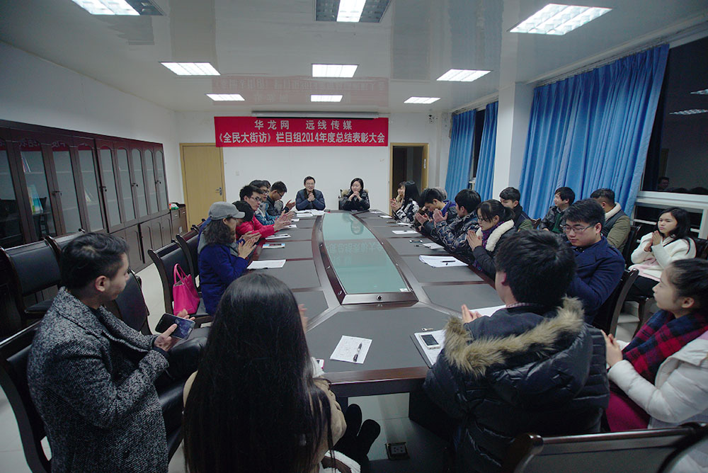 2014年1月8日,《全民大街訪》欄目組2014年度總結(jié)及表彰大會在本公司重慶工商大學(xué)制作中心會議室舉行,華龍網(wǎng)視聽中心副主任、《全民大街訪》監(jiān)制趙琪瑤,本公司傳媒事業(yè)部總監(jiān)、《全民大街訪》制片王世華,欄目組負責(zé)人梁唐輝,影視部負責(zé)人楊浩夫,平面部負責(zé)人張玨源以及欄目組全體記者編輯共計出席了會議。《全民大街訪》前編導(dǎo)、央視原員工趙晨應(yīng)邀出席會議。