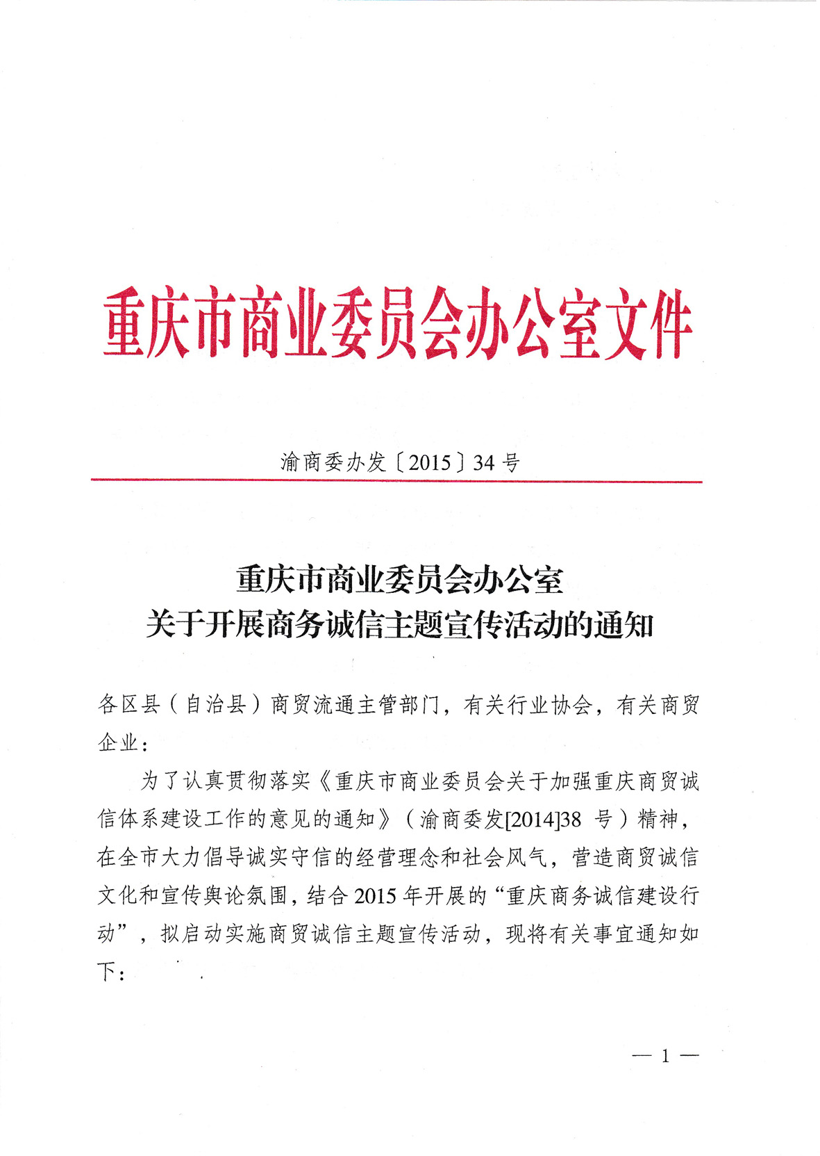 ??附:《重慶市商業委員會辦公室關于開展商務誠信主題宣傳活動的通知》(渝商委辦發[2015]34號文件)